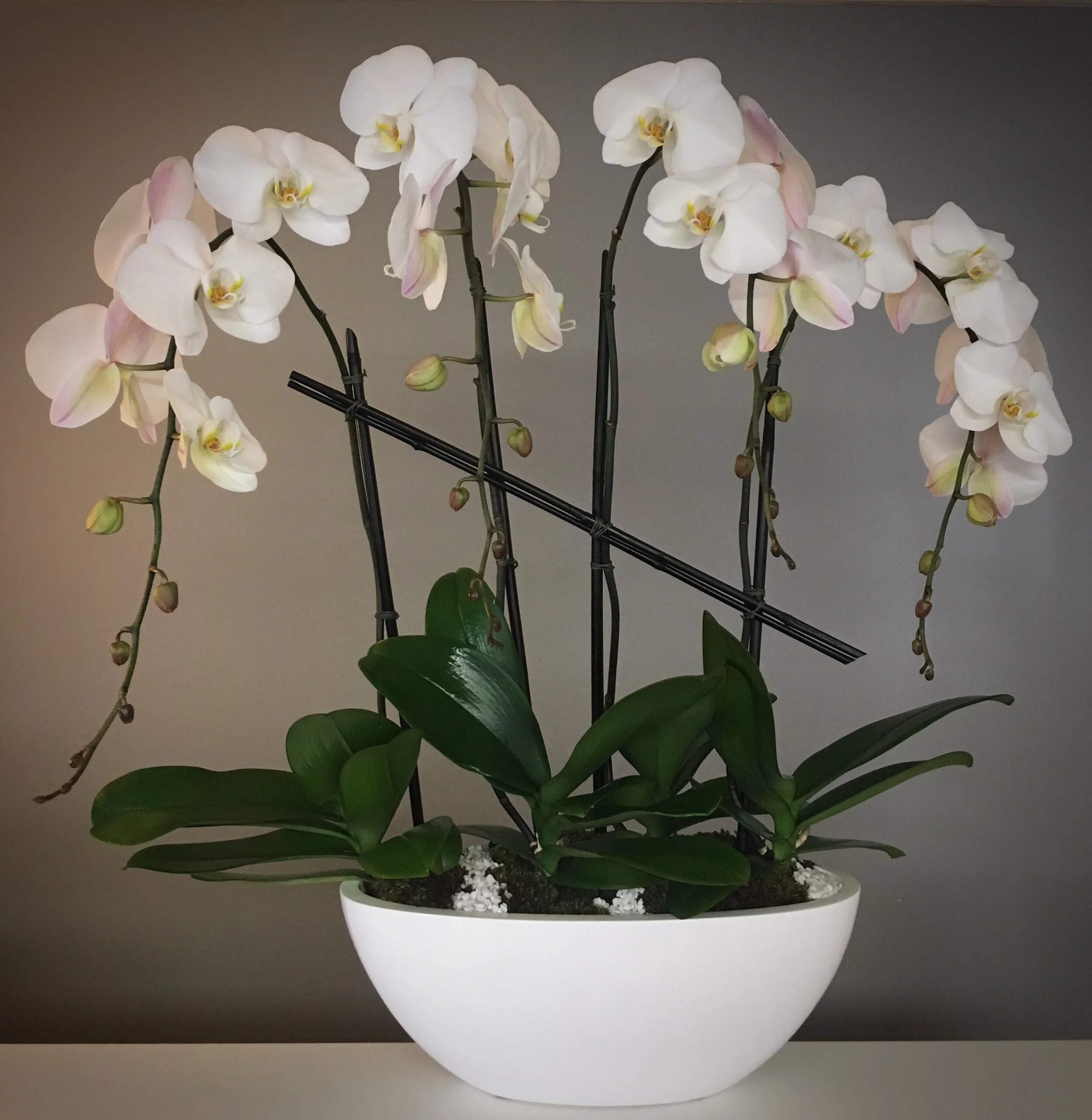 THE ELEGANT WHITE CASCADING ORCHID EFFORTLESSLY MATCHES ANY DECOR